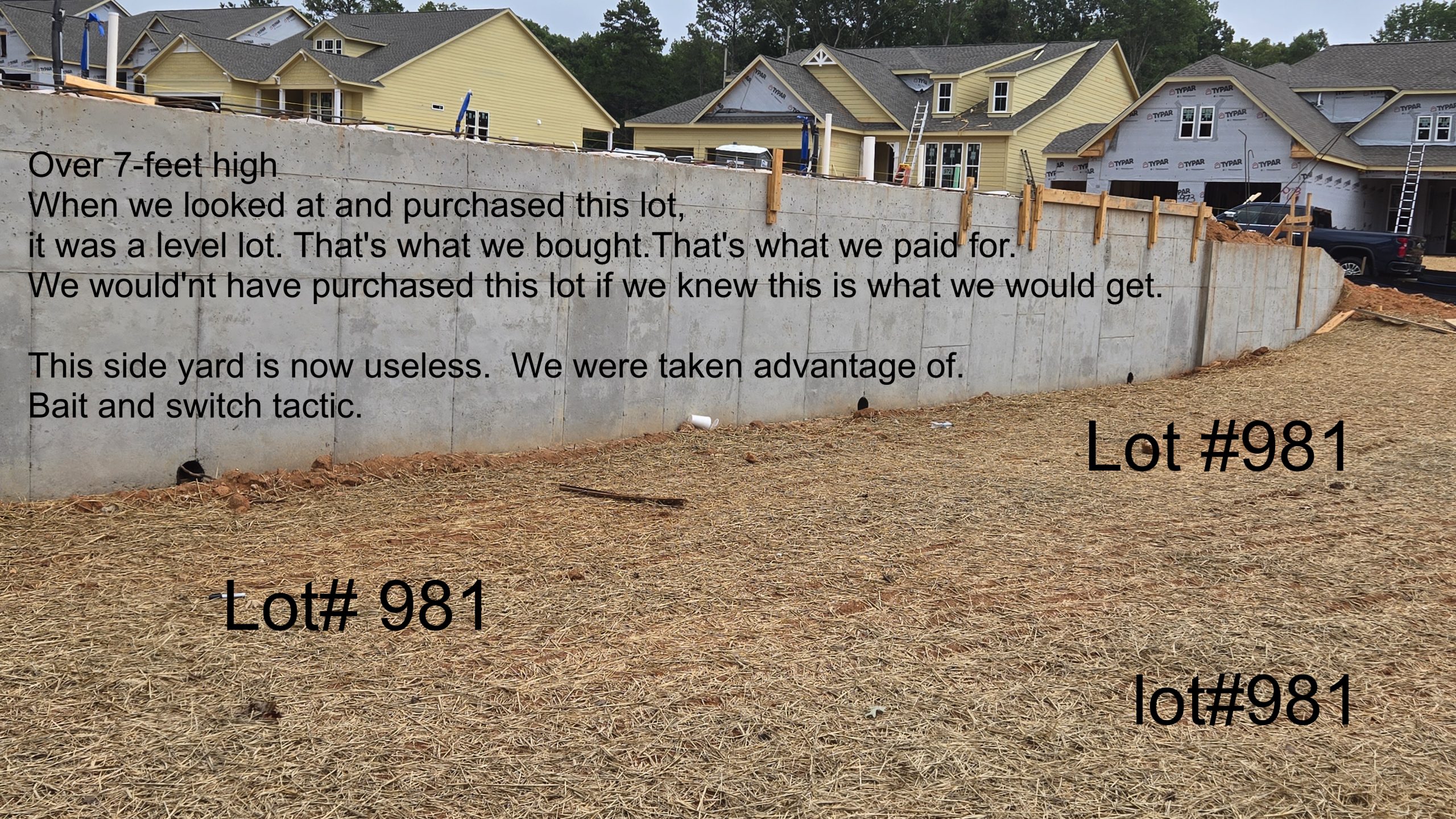 We are not happy about the bait and switch tactic regarding our lot.  Lot 981